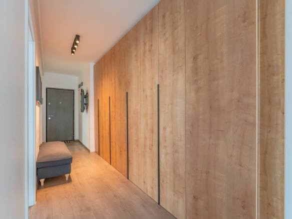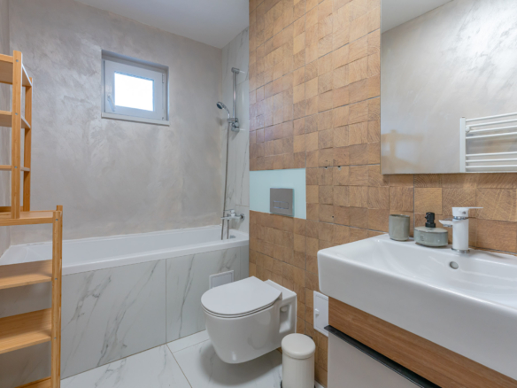 – Electrocasnice: Smart TV, frigider, plită pe gaz, cuptor electric, hotă, mașină de spălat vase și mașină de spălat rufe.