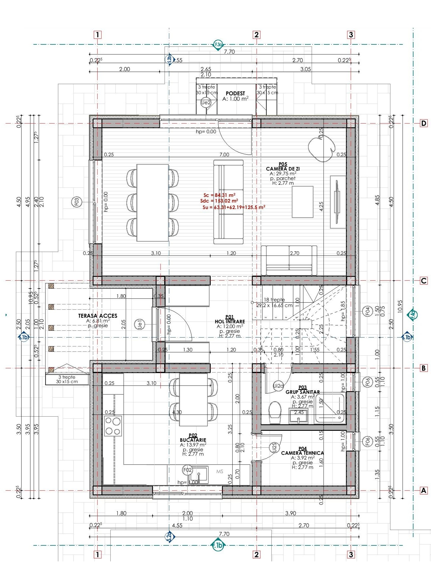 Suprafețe: 125 mp utili | 165 mp construiți desfășurați (amprentă la sol de 81 mp).