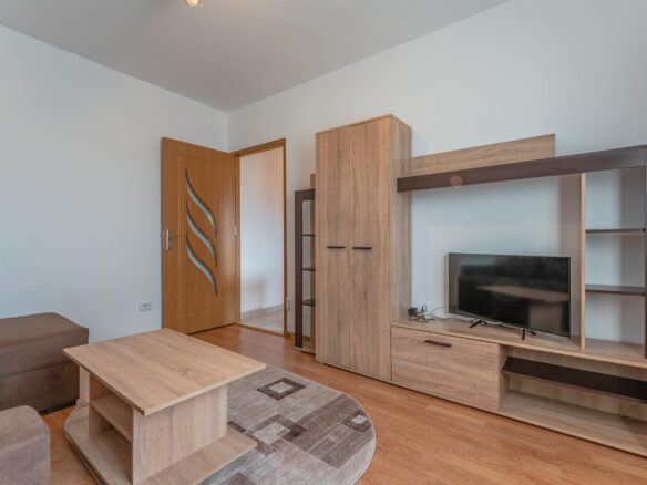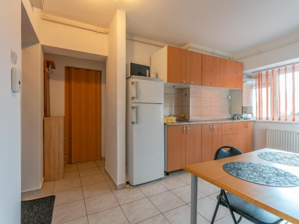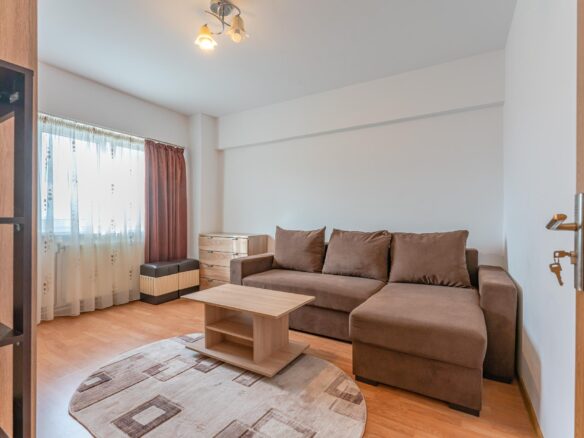 Garsoniera are o suprafata utila de 28 mp, fiind compusa din: camera, bucatarie, baie, debara si hol. Imobilul se inchiriaza mobilat si utilat (masina de spalat rufe, aragaz, frigider, cuptor microunde si TV) conform fotografiilor de prezentare.
