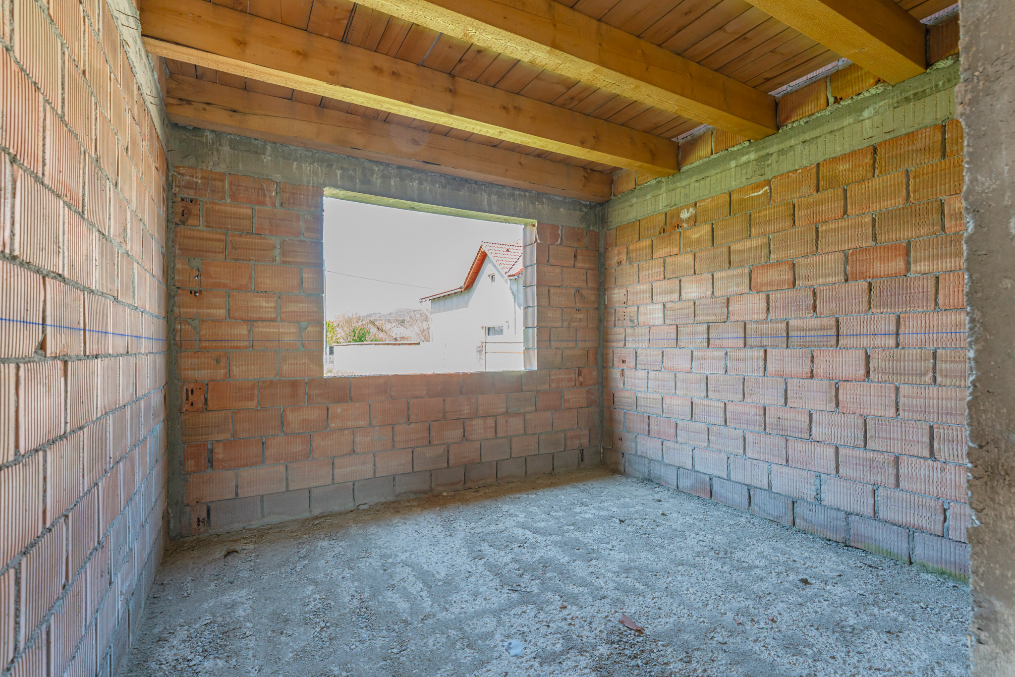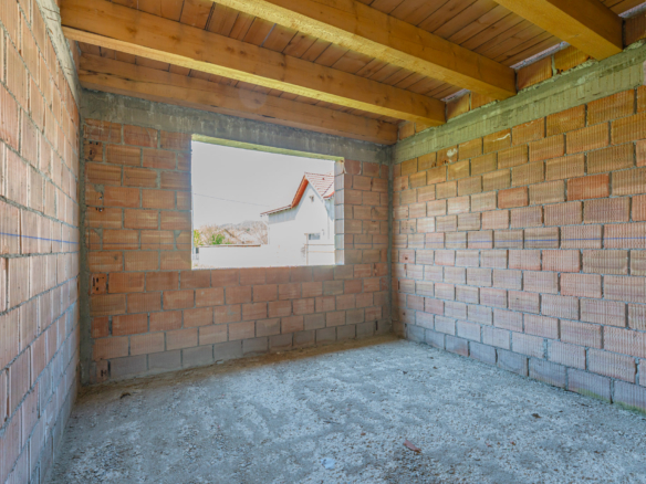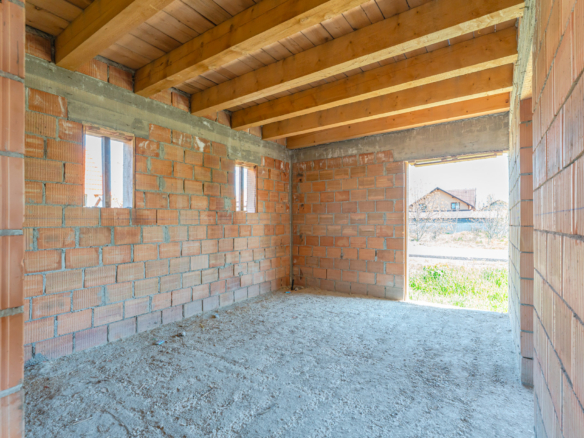 Construcția recentă din cărămidă, realizată în anul 2022, și stadiul actual ”la roșu” constituie avantaje importante, permițând viitorilor proprietari libertatea completă în alegerea finisajelor. Zona beneficiază de o atmosferă calmă, potrivită pentru o viață de familie, menținând totodată accesul către punctele de interes principale ale localității.
