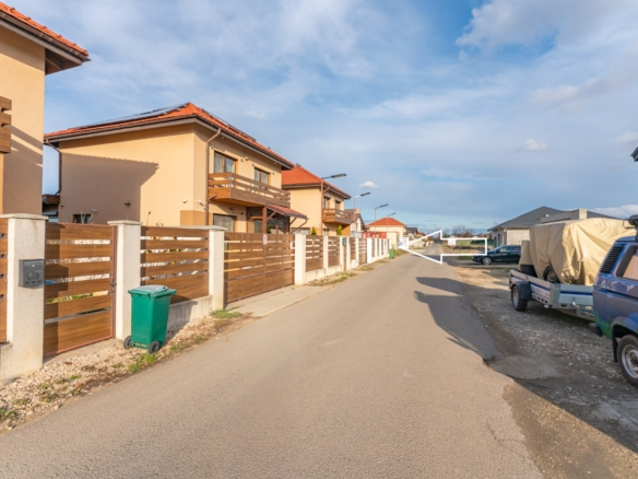 Terenul este îngrădit pe două laturi (spre vecini) și beneficiază de acces imediat la infrastructura completă. Un avantaj considerabil este faptul că proprietatea este deja branșată la rețelele de apă curentă și canalizare. Celelalte utilități – curent electric, gaz și fibră optică (DIGI) – se află la limita proprietății (la stradă), necesitând doar procedurile standard de branșament.